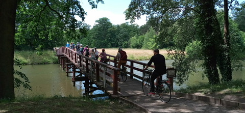 Mitgenommen wurden Jugendliche aus deutschen Städten und Schüler aus der Schule Nr. 4 in Żagań auf eine interessante Radtour entlang des Lehrpfades „Steinerne Spuren der Vergangenheit". Die jungen Menschen lernten die schönsten Ecken und die Geschichte des Parks von Żagań kennen.