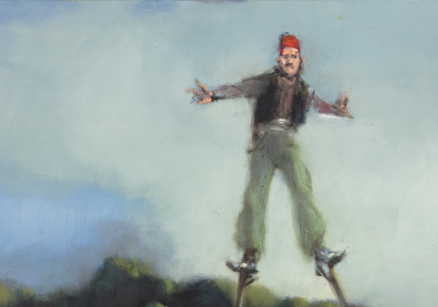 Freunde der Kunst des Cottbuser Malers Günther Rechn können sich seit wenigen Tagen über ein Werk des Künstlers auch im Schloss Branitz freuen. Auf seinem 2018 entstandenen Bild „Pückler im Park" zeigt Rechn den „grünen Fürsten" als Lebenskünstler, balancierend auf Stelzen am Tumulussee im Branitzer Park, im Hintergrund seine Grabpyramide. Zu sehen war das Gemälde in diesem Jahr schon auf der großen Ausstellung im Branitzer Marstall zum 75. Geburtstag von Günther Rechn, der sich in seinem Werk immer wieder mit dem Fürsten Pückler und seinem Branitzer Park beschäftigt. Nun konnte das Bild mit Unterstützung des Vereins Fürst Pückler in Branitz und der Familie André Barsig durch die Stiftung Fürst-Pückler-Museum erworben werden und ist in der Dauerausstellung „Fürst Pückler. Ein Europäer in Branitz" im Grünen Kabinett im Obergeschoss des Schlosses zu sehen.