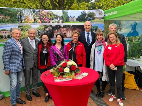 Auf dem Gubener Rathausplatz informierten Mitglieder aus Cottbus und der Rosenstadt Forst im Schulterschluss über die grenzüberschreitenden Aktivitäten des Parkverbundes. Dabei berichteten sie dem interessierten Publikum zum einen über die Erfahrungen und Effekte von deutsch-polnischen Projekten sowie zum anderen über anstehende Veranstaltungen und die vielfältigen Ausflugsmöglichkeiten zu den einzelnen Schlössern und Parkanlagen des Verbundes.
