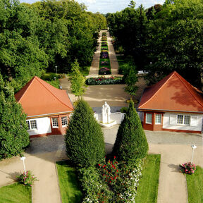 Nehmen Sie Platz im Schatten alter Bäume oder wandeln Sie in einem Meer von Duft und Farben. Genießen Sie eine Pause im Café an den Wasserspielen oder im Restaurant »Rosenflair«.